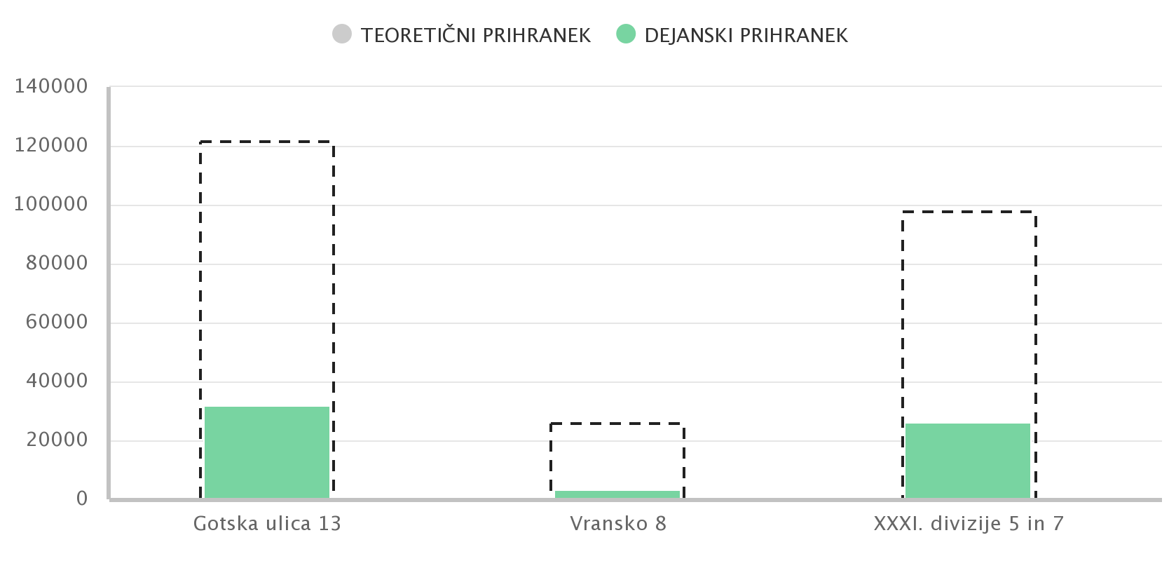 Primerjava med teoretičnimi in dejanskimi prihranki (kWh)