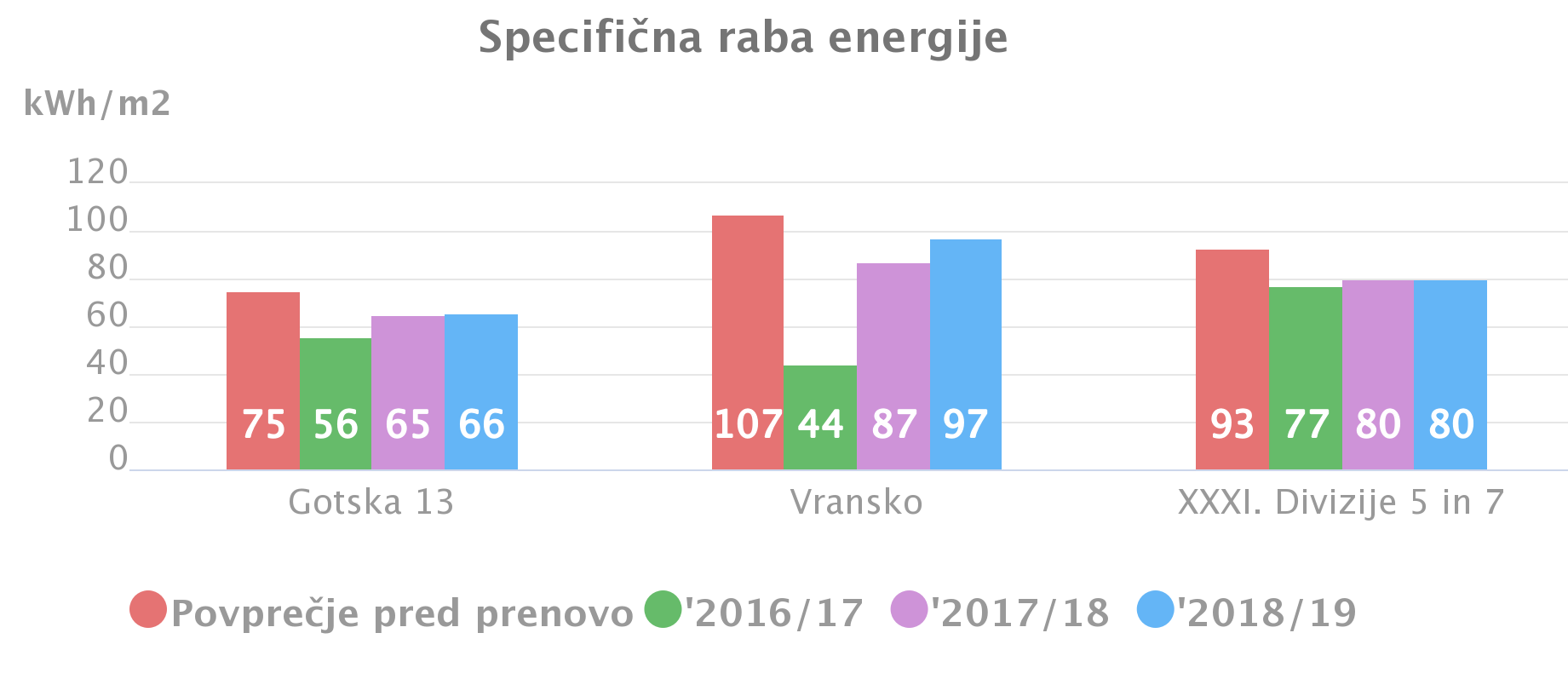 Spodaj so prikazani rezultati teoretičnega in dejanskega prihranka toplotne energije, kot tudi prikaz povprečja prihrankov energije in stroškov pred sanacijo in po njej.