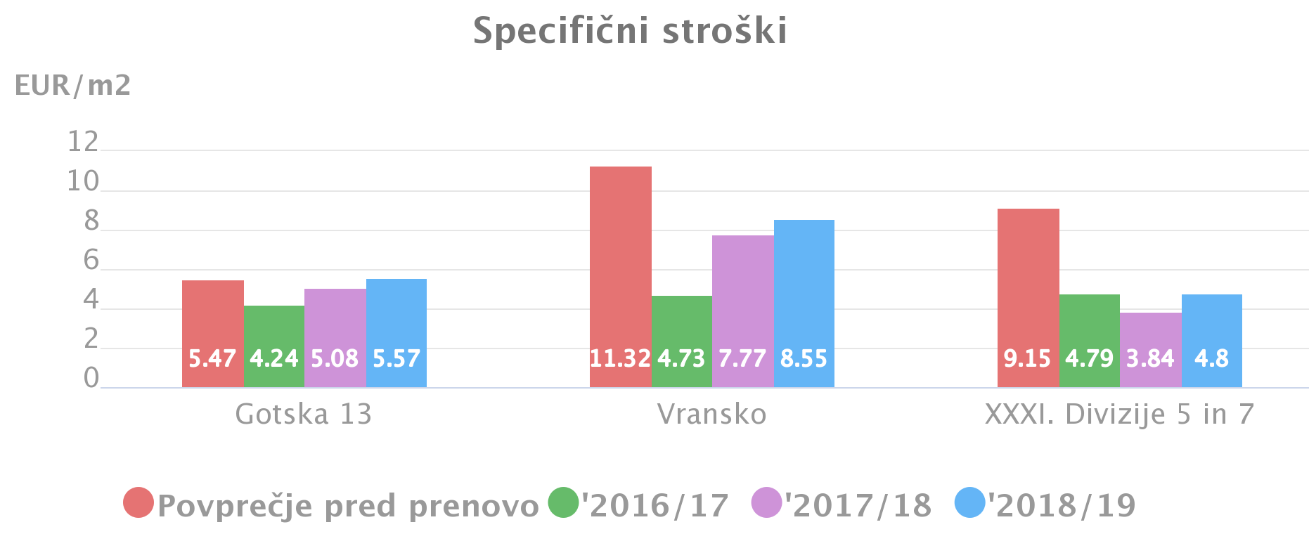 - primerjava stroškov za toplotno energijo med leti 2013, 2014 in 2015 po mesecih,